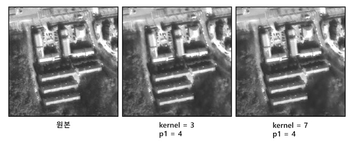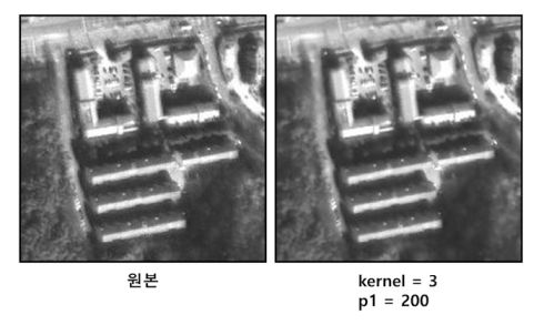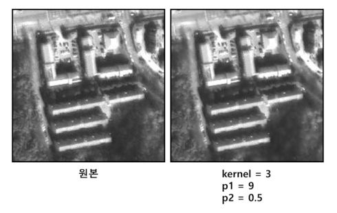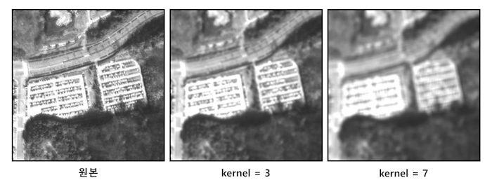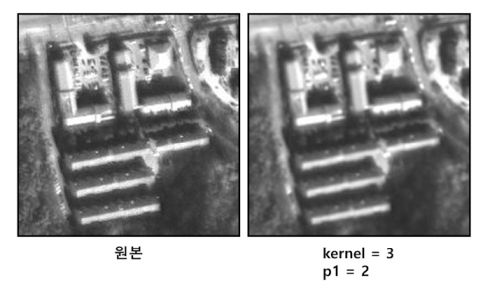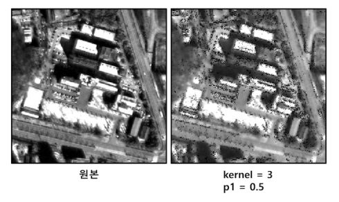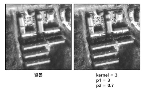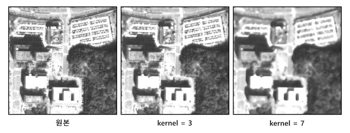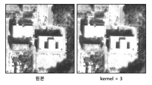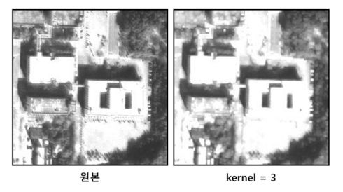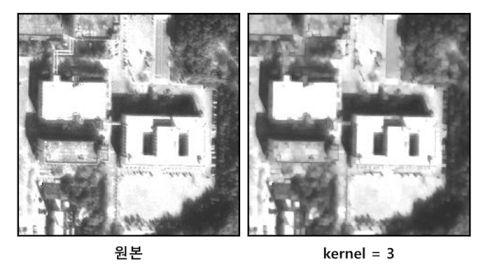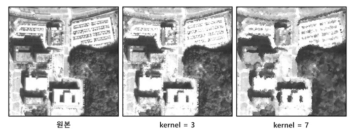 Morphology Filter(Open)은 침식 연산(erosion)을 수행한 후 다시 팽창(dilation) 연산을 수행한다. 작은 크기의 객체에 포함되는 픽셀을 제거한다. ![]() |