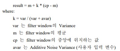 Lee[Additive] Filter는 에지와 같은 고주파의 특징들은 보존하는 반면 고주파 노이즈를 제거하기 위하여 레이더 데이터에 주로 적용된다.