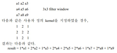 사용자 정의 kernel을 이용하여 필터를 적용한다. ![]() ![]() |
